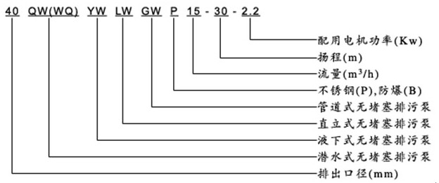 GWP不銹鋼立式管道排污泵型號(hào)意義: